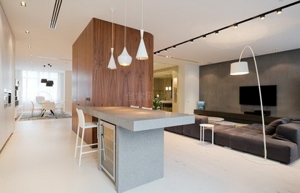 柜子隔板在中间,两边与餐厅相连,做圆周运动线很方便。