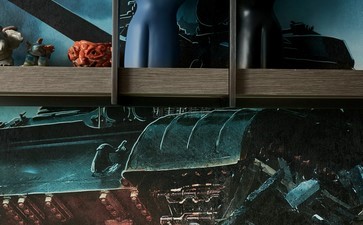 次卧是两个男生的房间,兼具休息、阅读和收纳的功能。同时,为了增强各自区域的归属感,根据两兄弟不同的颜色偏好,通过背景进行区分。